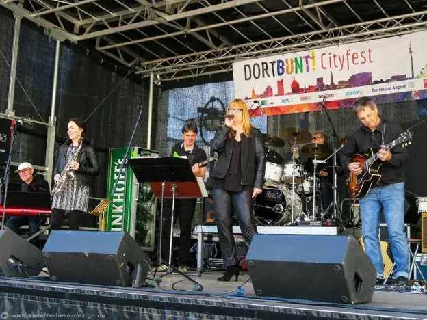 >05.05.2018Am 5. und 6. Mai 2018 war die große Bühne auf dem Alten Markt in Dortmund für die JAZZIS bereit, die hier an beiden Tagen den Auftakt zum Stadtfestival DORTBUNT machten. Bei herrlichem Sonnenschein brachte die Gute-Laune-Musik so manche Besucher zum Tanzen.