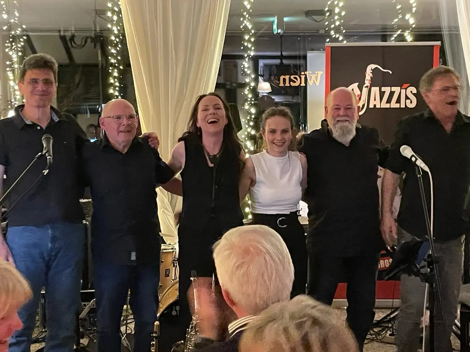 >09.03.2024Unterschiedlicher konnten die Momente nicht sein: letzte Woche noch im großen Saal oben auf der Bühne und gestern im Cafe Alt Wien in gemütlicher, trauter Atmosphäre ganz nah beim Publikum! Es hat extrem Spaß gemacht! Wir hatten schnell den Draht zu den Gästen im voll besetzten Raum gefunden und konnten diese für unsere Musik begeistern. Es gab vom sehr konzentriert zuhörenden Publikum zahlreich Szenenapplaus und nach dem Konzert begeisterte und anerkennende Worte für uns. Danke vor allem auch an Christian, der sich - erstmals bei uns - schnell in die Technik einarbeitete und uns einen super Sound mixte. Die Jazzis werden auf jeden Fall beizeiten wiederkommen müssen - so der Wunsch von Veranstalter Michael Cadek!