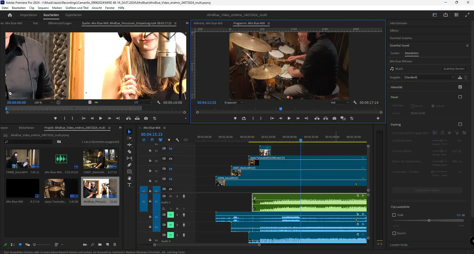 >10.06.2024Nach über acht Stunden war es vollbracht! Stolze sechs Titel haben wir im Camarillo-Sound-Studio einspielen können und waren damit sehr produktiv. Unsere bekannt eiserne Probendisziplin kam uns da inhaltlich und konditionell sehr zugute. Danke vor allem an Marvin, der ausdauernd und die Nachtschicht vor Augen bis zuletzt die Film- und Fotokamera bedient hat (bist ein Schatz!) und natürlich an Benny Mokross, der uns sehr souverän, humorvoll und erfahren durch den Tag geführt hat. Weiteren Verdienst erwarb sich Martins Frau Monika für das gebackene Pizzablech. Wir sind natürlich gespannt, wie nachher der Mix und die Videos nach viel Nacharbeit ausfallen. Erste Hörproben klangen aber schon sehr amtlich! Zusammen mit einer neu gestalteten Homepage werden wir dann zum Herbst mit neuen und professionellen Ton- und Videoaufnahmen einen weiteren Schritt nach vorn machen.