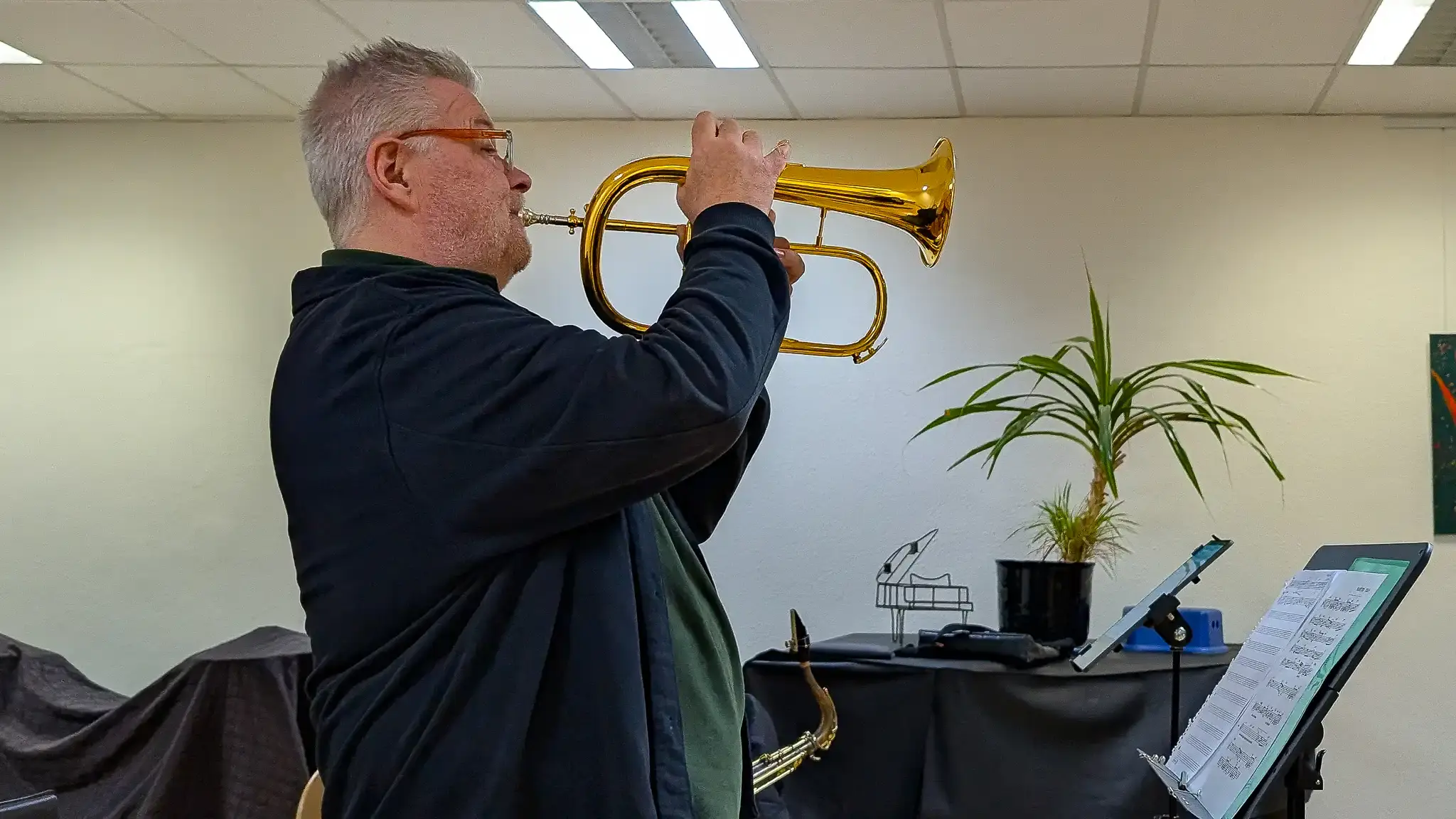 >12.03.2025Die zweite Probe mit unserem neuen Gebläse war extrem vielversprechend. Die für die nächsten Auftritte vereinbarten Titel liefen reibungslos. Rainer & Rainer verleihen der Band sehr viel Druck bei den funky tunes, ein echter winner ist dabei, dass beide schon früher in einer Band zusammengespielt haben. Rainer B. setzt mit seinem einfühlsamen Saxofonspiel z. B. bei "Maputo" Akzente. Rainer M. überzeugt uns mit seinem sehr jazzigem Spiel und virtuosen Improvisationen auf dem Flügelhorn, die bei "Strasbourg St. Denis" stark an Jan van Duikeren erinnern. Auch die Bossa-Stücke laufen bereits fast perfekt. Hier und da müssen natürlich die zum Teil vielfältigen Jazzis-Arrangements noch verinnerlich werden, das braucht naturgemäß etwas Zeit.