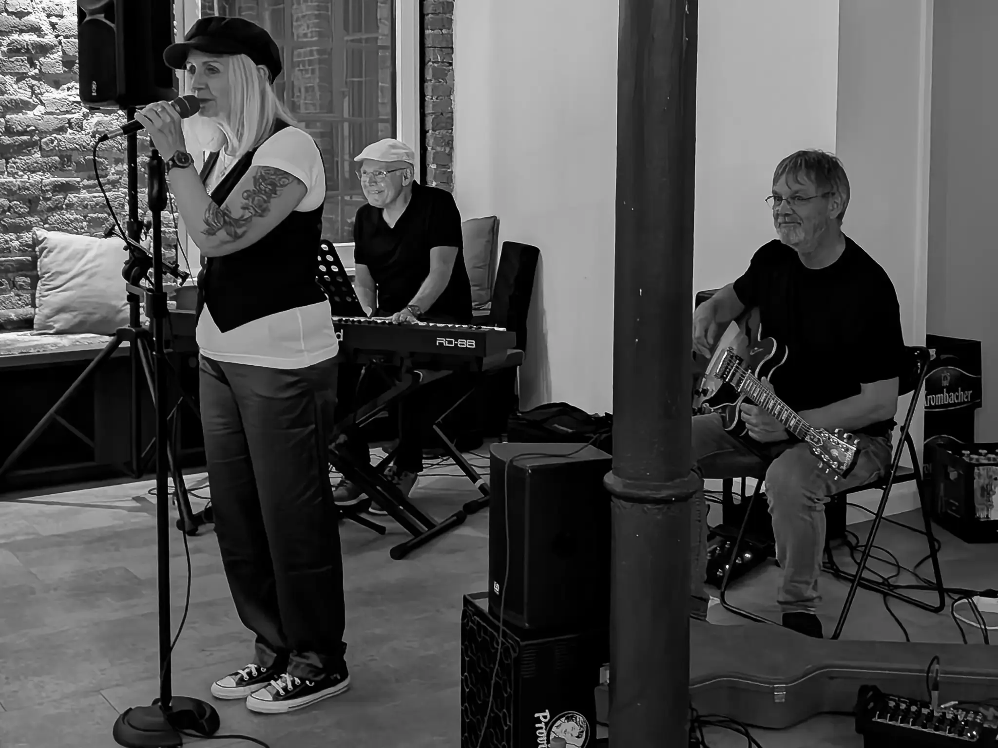 >20.09.2025Vorweg ein Kompliment an die Location: die alte Fabrik ist ein charismatisches Areal mit dem schönen Innenhof und modern und stilvoll renovierten Räumen. Unter anderem ist hier das Unternehmen Qwörk Iserlohn zuhause, das auch das Event stark unterstützte. Bei der "Wechselschicht" in der Iserlohner Fabrik spielten in vier Räumlichkeiten abwechselnd je zwei Bands. Das Konzept kam bei den zahlreich erschienenen Besuchern offenbar sehr gut an. Sehr gut auch die Betreuung der Bands, im Backstagebereich war ein tolles Buffet aufgebaut, an dem sich die Bands stärkten, kennenlernten und austauschten. Das Trio Susan Kent (vocals), Peter Hünnemeyer (piano) und Stefan Weigelt (guitar) konnte unter dem Programmtitel "Susan Kent meets Jazzis" bei der Premiere voll überzeugen und erhielt nach den zwei Auftritten zahlreich Zuspruch durch Szenenapplaus und in Gesprächen. Präsentiert wurden Swingklassiker und Latinsounds, bei denen Susan mit ihrer markanten Stimme, Peter mit perligen Pianoimprovisationen und Stefan mit farbigen Harmonisierungen überzeugen konnten. Dass man die Lauscherschaft auch mit kleiner Besetzung zum Tanzen animieren kann, zeigte u. a. das funky arrangierte "Summertime". Auch die IKZ war voll des Lobes. Wir danken Brigitte Felician Siebrecht und Ralf, aber auch den anderen im Orgateam für die Einladung und nette Unterstützung. Gerne kommen wir wieder, das nächste mal gerne auch in voller Besetzung!