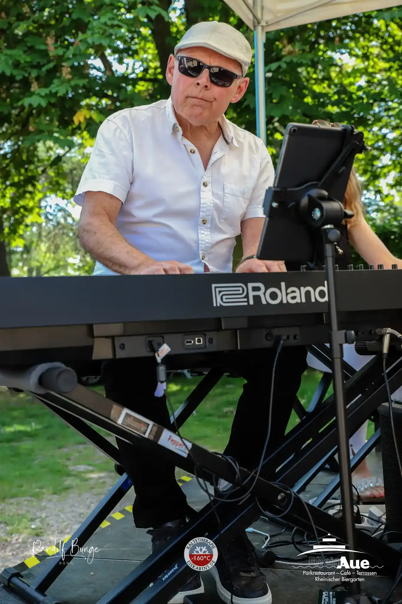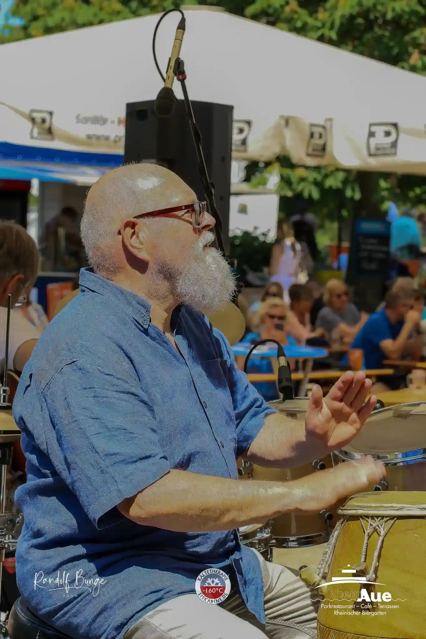 >28.05.2023Im prall gefüllten Biergarten des Parkrestaurants Rheinaue in Bonn gaben die JAZZIS dieses Jahr schon zu Pfingsten ihr alljährliches Konzert. Es wurde viel getanzt und mitgesungen ? und das alles bei sommerlichen Temperaturen. So floss viel Schweiß auf der sonnigen Bühne, aber das ist uns doch viel lieber als das Wasser, das uns vor zwei Jahren die Instrumente überschwemmte. Unsere neuen Stücke und die guten alten JAZZIS-Klassiker sorgten bei den zahlreichen Gästen für beste Stimmung. Nächstes Jahr kommen wir gerne wieder!